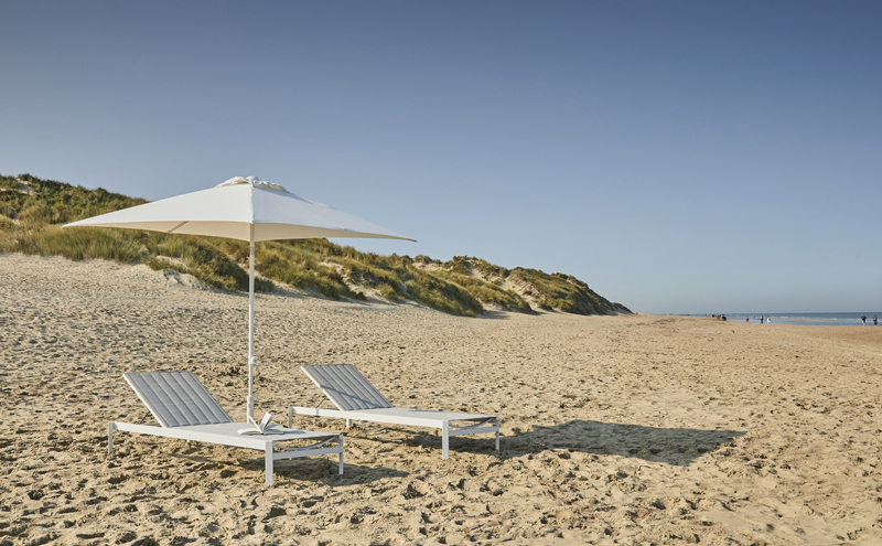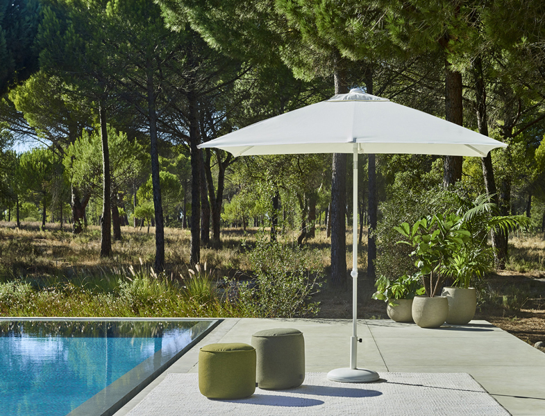 Powder-coated aluminium. White or Anthracite. Olefin outdoor fabric Height adjustable pole, tilting mechanism, PVC protective cover bag, |