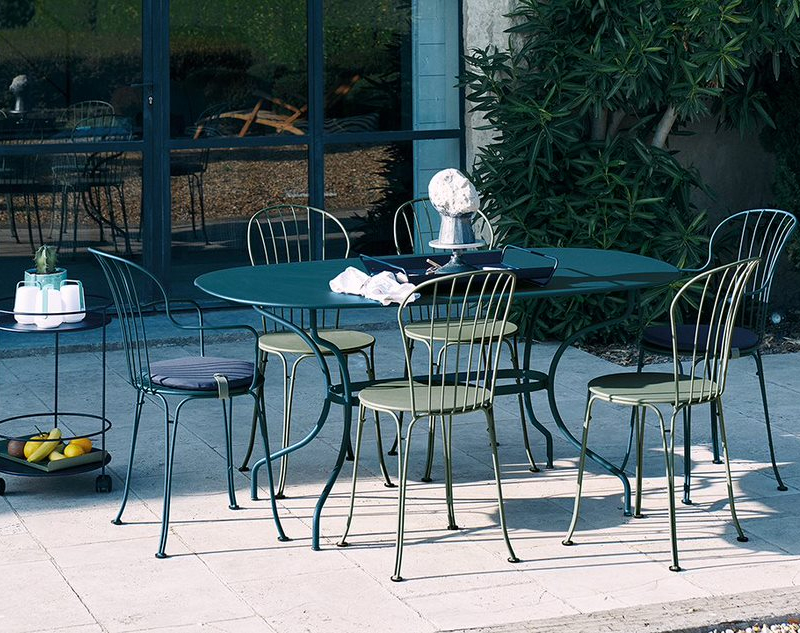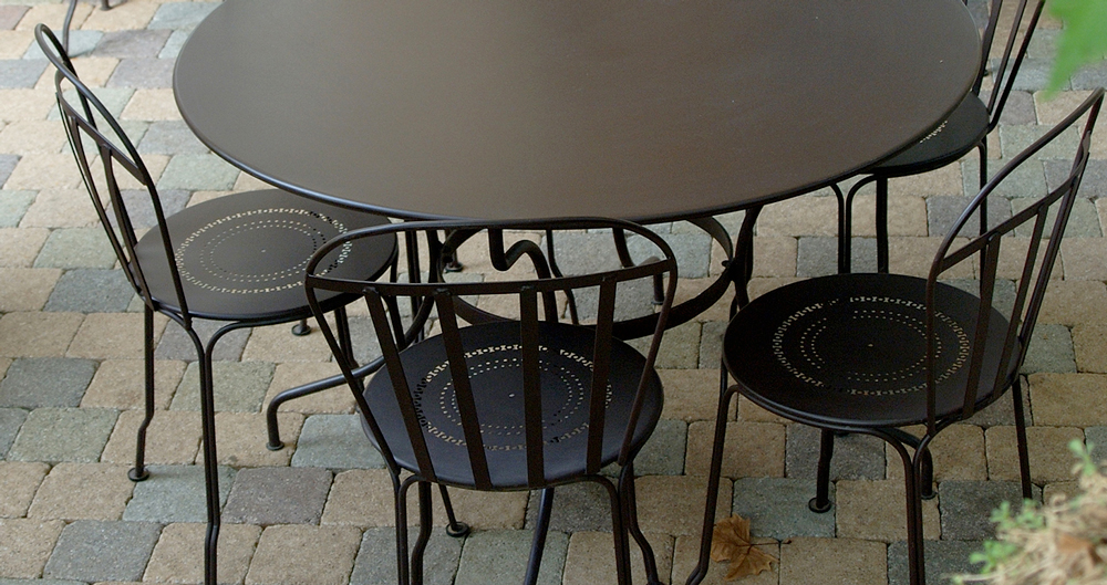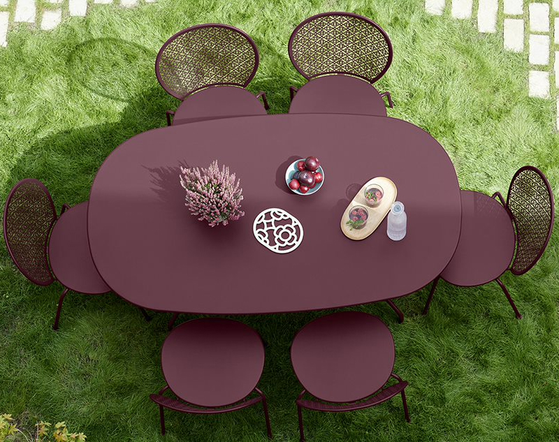 Steel Sheet Table Top, Steel Tube Base, Flat Steel Belt, Umbrella Hole 39mmø |